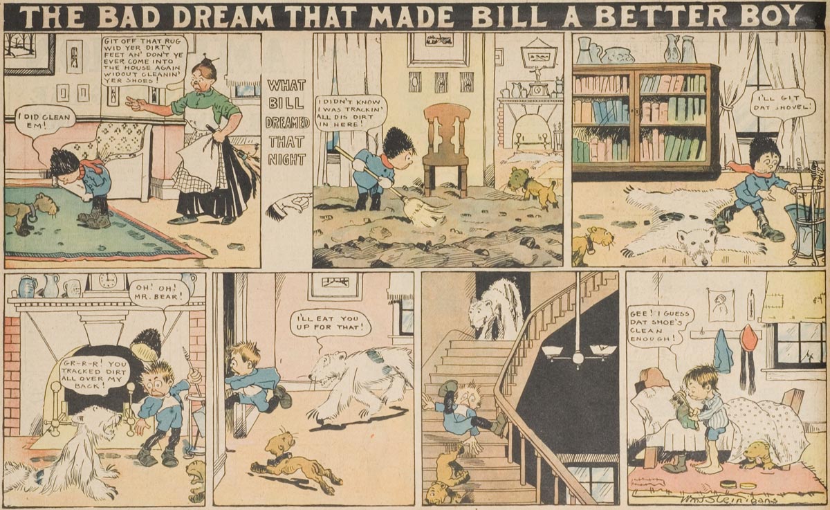 Dunk’s strip seems to belong to a tradition in which the bad dream prompts the reformation of the “wicked” dreamer, which will reappear in newspaper comics, for example in William Steiningns’s The Bad Dream that Made Bill a Better Boy, which ran in the New York World from 13 August 1905 to 16 April 1911: