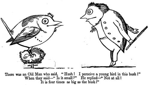 Osmosis between humans and animals is one of the recurring features of Edward Lear’s limericks, and one of the most often commented on by critics. It often involves birds as in the following cases, all from A Book of Nonsense:
