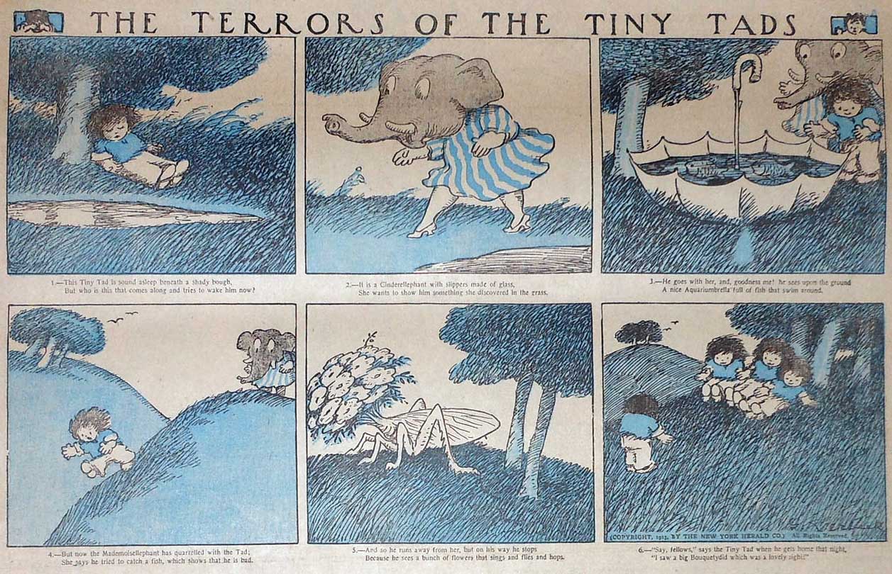 Here is a nice adventure of Gustave Verbeek‘s Tiny Tads, from the Boston Sunday Post of 13 July 1913: