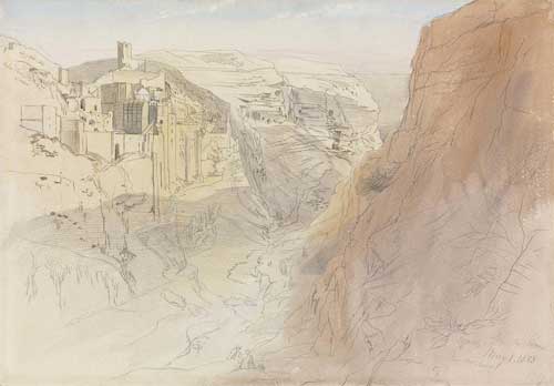 Nnumbered, inscribed and dated ‘Deir Mar Sabbas./May 1.1858/Deir Mar Sabbas/(127)’ (lower right) and further inscribed with colour notes