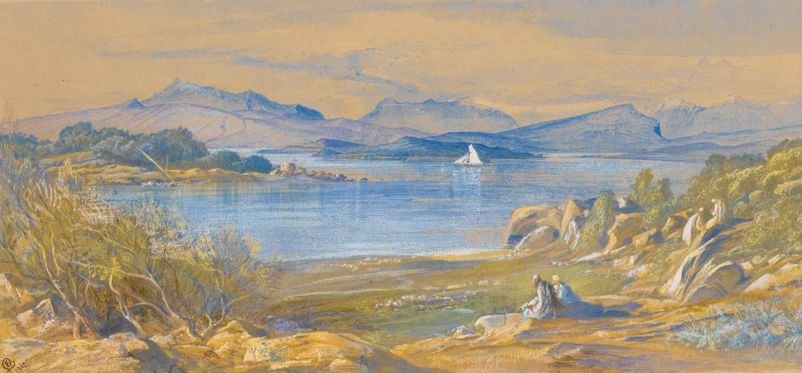 Watercolour over pencil heightened with bodycolour; signed with the artist’s monogram and dated lower left: 1862. 170 by 360 mm.