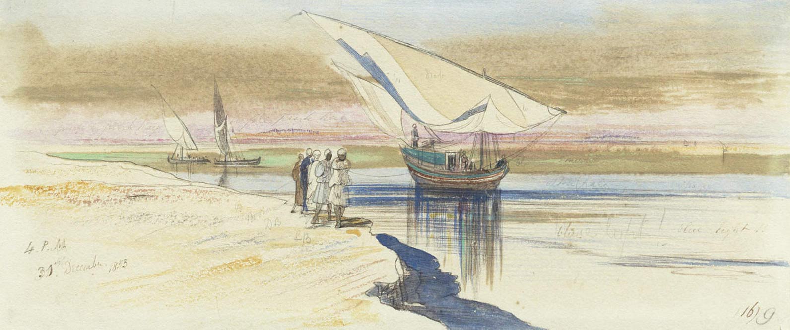 Inscribed and dated ‘4pm 31 December 1853’ (lower left). Watercolour, pen and ink. 9.5 x 23cm (3 3/4 x 9 1/16i.