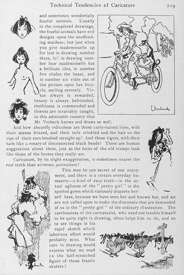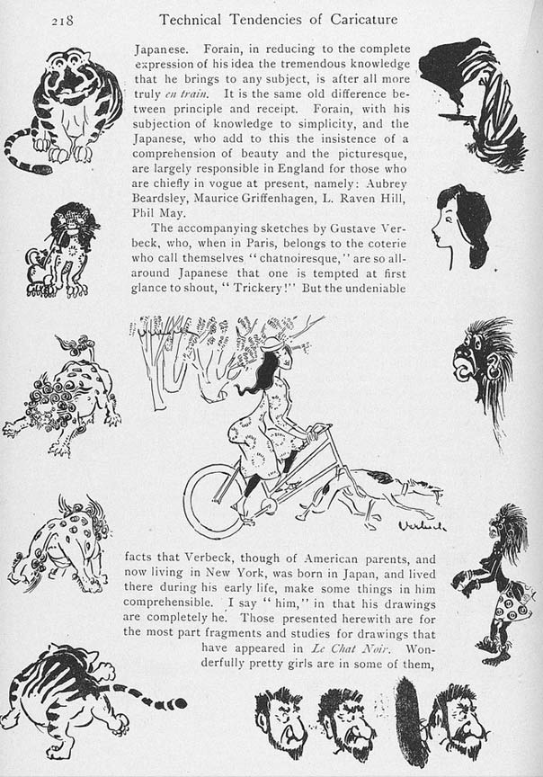 Henry McBride & Gustave Verbeck, “Technical Tendencies of Caricature.” The Monthly Illustrator, Vol. 4, No. 13, May 1895, pp. 215-219.