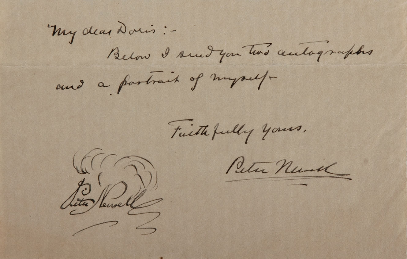 Peter Newell, Autograph Note Signed and with Original Sketch within a Second Signature.