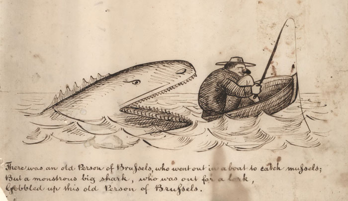 There was an old Person of Brussels, who went out in a boat to catch mussels;