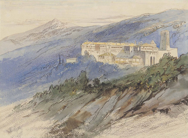 Edward Lear, The Monastery of Koutloumousiou, Mount Athos.