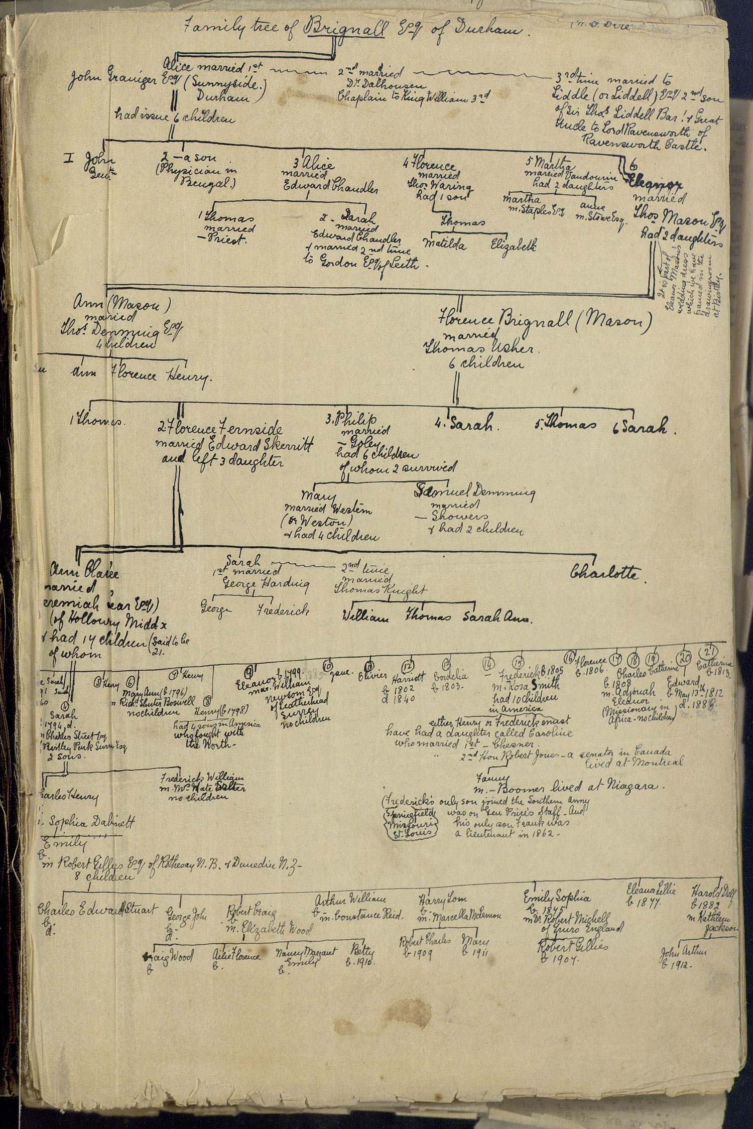 The second source listing 21 children is bound in the collection of typescripts of Edward’s letters to Ann, also from the New Zealand branch of the family; the manuscript ― headed “Family tree of Brignall Esq of Durham” ― is either an “improved” copy of MS L. 3/39-1985 discussed below, or its original. It states: