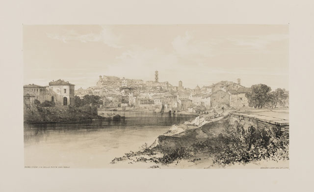 Italy.- Lear (Edward) Views in Rome and its Environs, lithographed vignette title and 25 plates after Lear, tissue-guards, some occasional marginal soiling but a very good, clean copy overall, gutta percha perished with plates loose or becoming so, prospectus loosely inserted, original morocco-backed cloth, a little rubbed, [Abbey, Travel 183], folio, 1841.