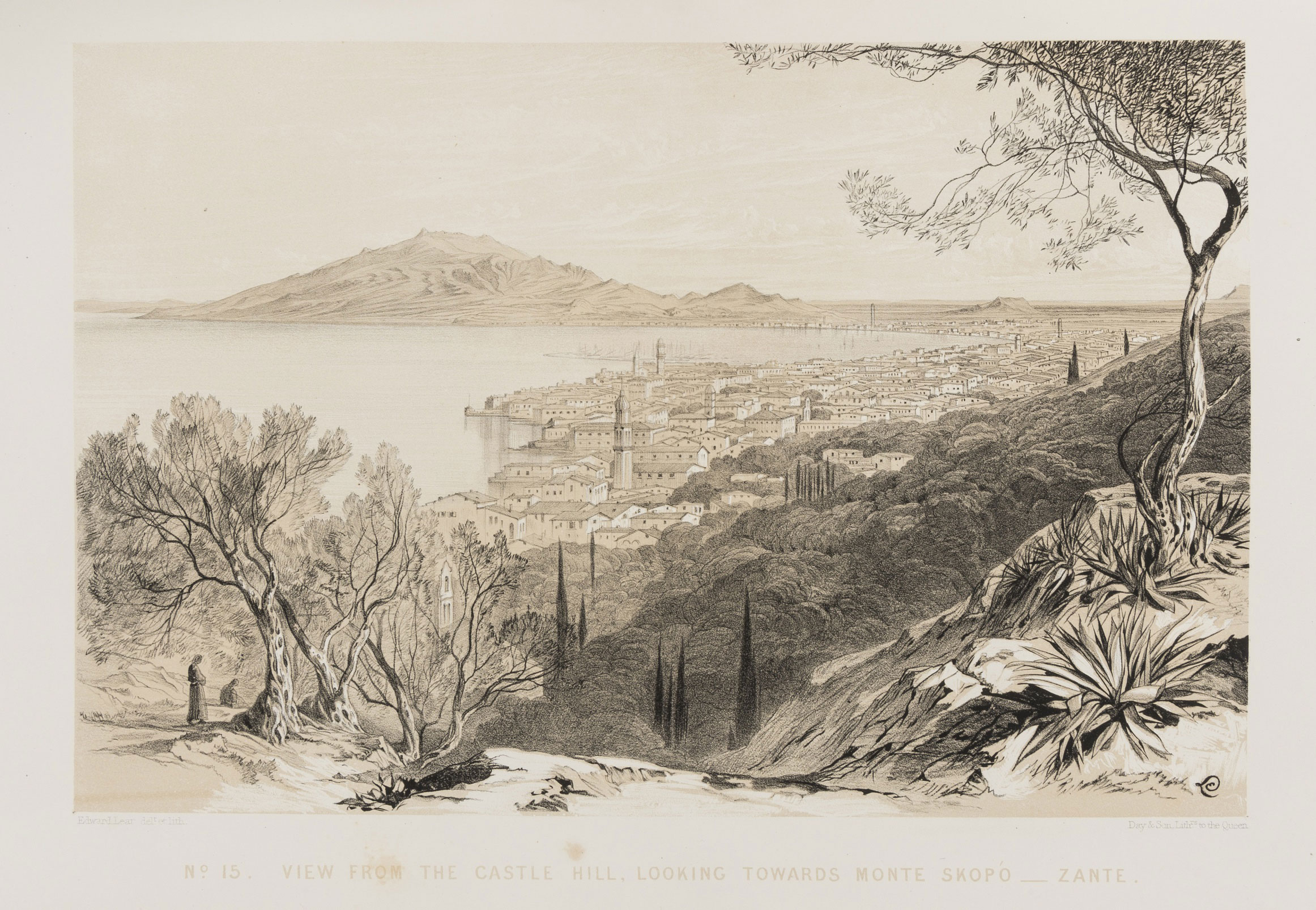 Greece.- Lear (Edward) Views in the Seven Ionian Islands, signed presentation copy from Lear to Evelyn Baring inscribed “Corfu March 1864” fly-leaf, tinted lithographed title and 20 tinted lithographed plates, plate guards, each plate with accompanying leaf of text, list of subscribers, some scattered foxing mostly in margins, bound in handsome contemporary green morocco, gilt, g.e.,by Bickers & Son London, housed in a modern slip-case, [Blackmer 987], folio, 1863.