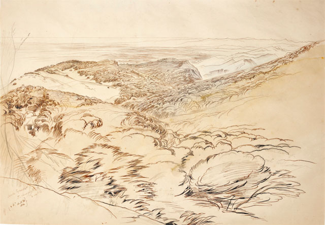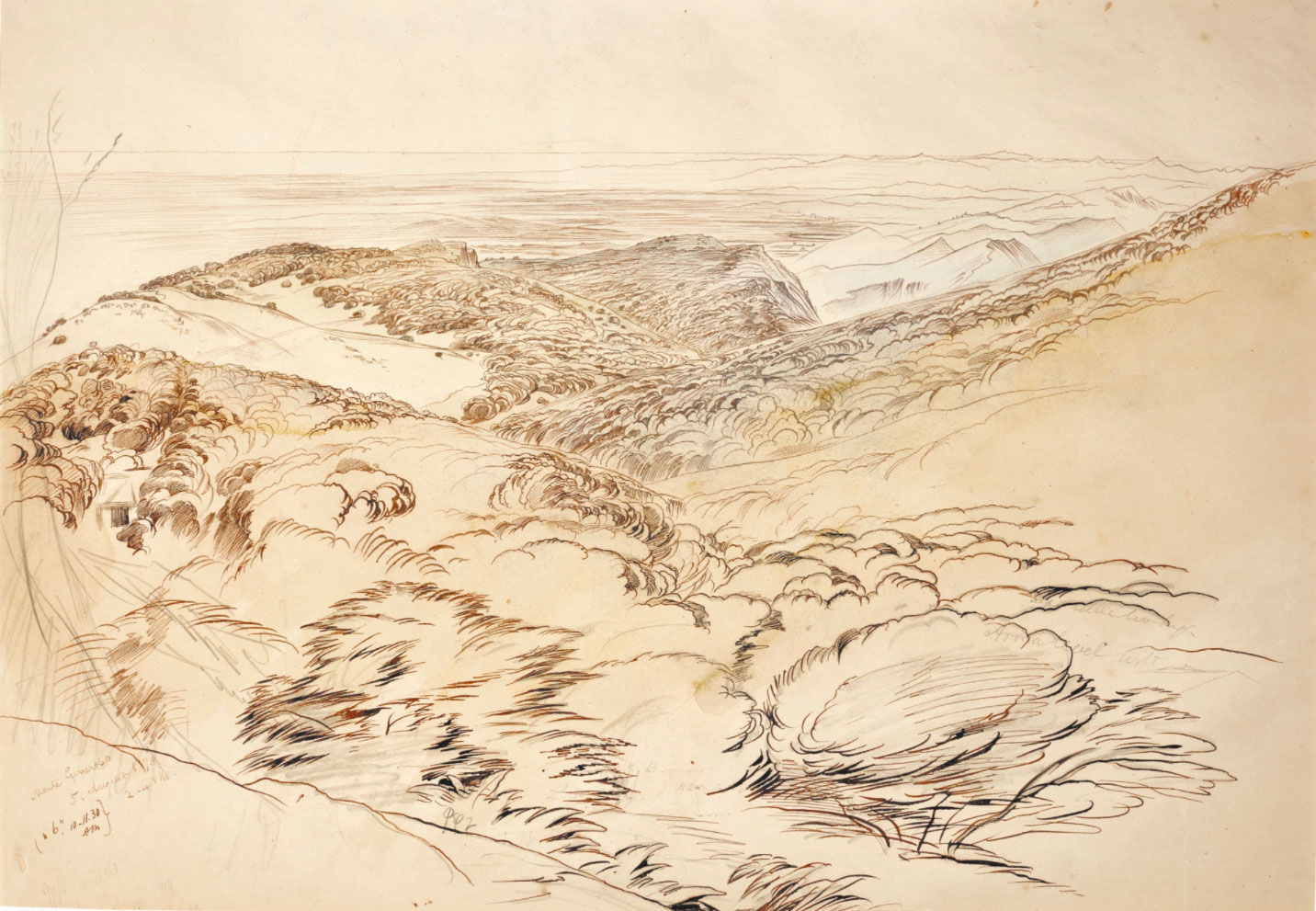 Pen and brown ink and watercolour over pencil. Inscribed and dated: Monte Generoso / 5. August 1878/ 2-4 pm./ (& 6th 10-11.30/am) and further inscribed with colour notes. 380 by 542 mm