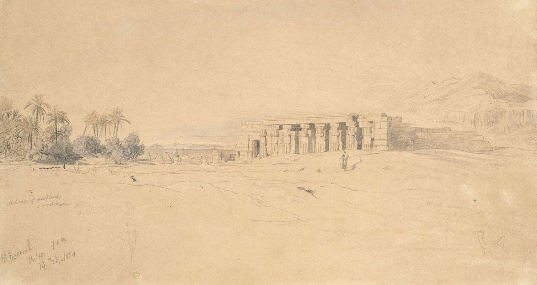 Inscribed and dated ‘El Koornek/Thebes 7:00 on/19.Feb.1854’ (lower left) and annotated throughout. Pencil and watercolour. 28 x 48.9cm (11 x 19 1/4in).