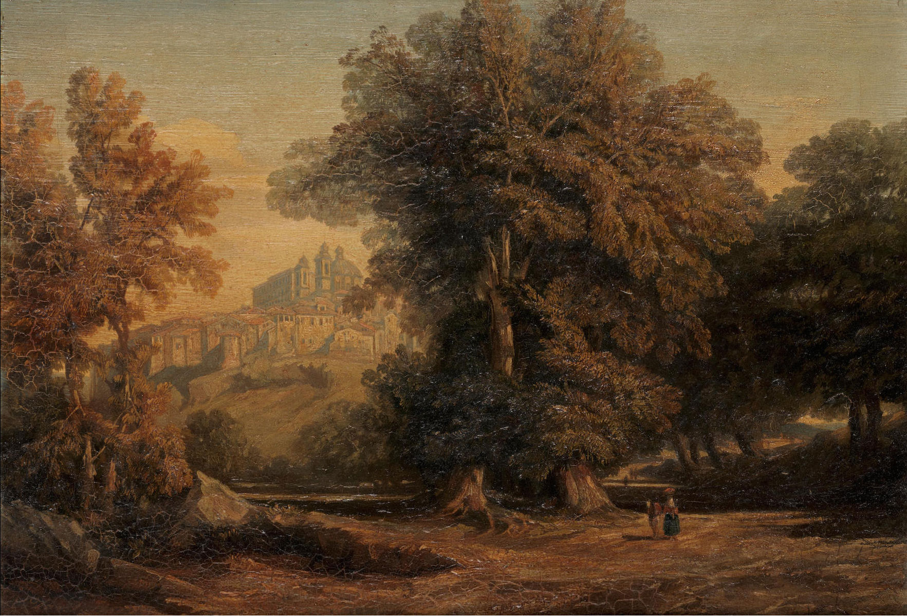 A pencil drawing (with white bodycolour) of Val Montone from 1839 is illustrated in Vivien Noakes’ book The Painter Edward Lear (Newton Abbot, 1991, p. 13). Now in the collection of the British Museum, the composition is similar to the present lot. Travellers on a rural path lead the viewer’s eye to the commune of Val Montone, framed between the foliage of magnificent trees. Lear left for Italy in 1837, writing to his sister about the journey from Milan to Florence: ‘I never enjoyed anything so much. Thick woods of oak are on every side, and the road which is very steep and winding, looks quite over all the enormous flat plain’.1