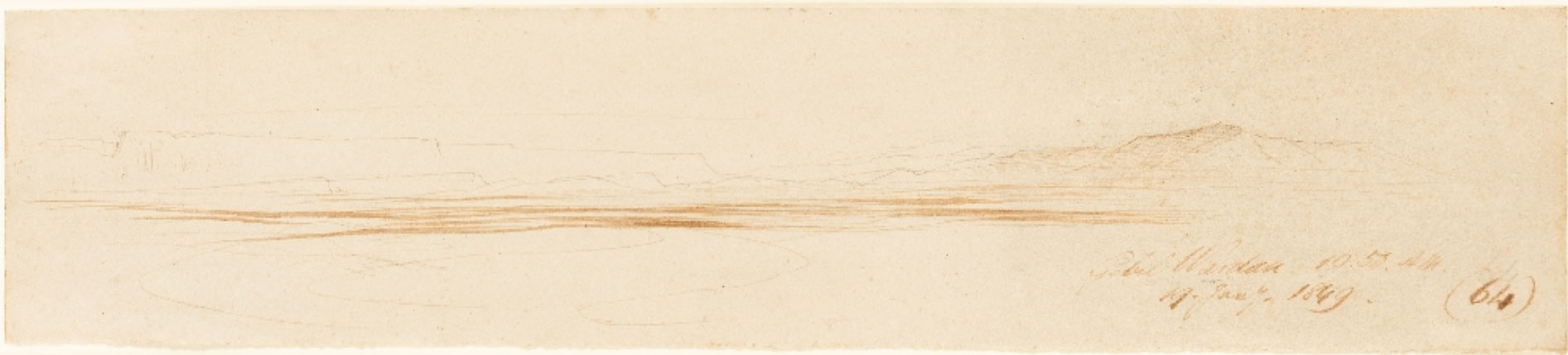 Inscribed and dated l.r.: Gebel Wardan 10.50.AM. / 19.Jany. 1849 (64). Brown ink and pencil. 7.5 x 35.5cm / 2.9 x 14.0in.