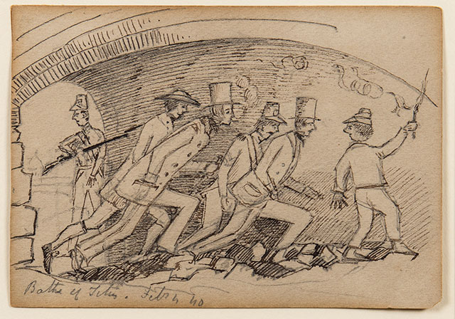 Edward Lear, ‘Baths of Titus’. Pencil, pen and ink. Inscribed and dated, Feb. 4 (18)40. 3.5×5 inches.