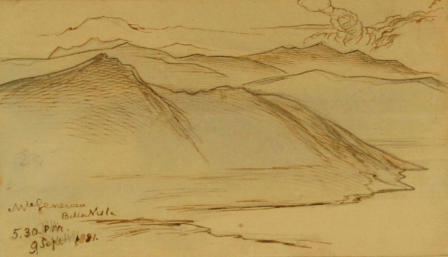 Inscribed with title and dated l.l.: 5.30 pm/9 Sept 1881. Pen and sepia ink, 10 by 17 cm.