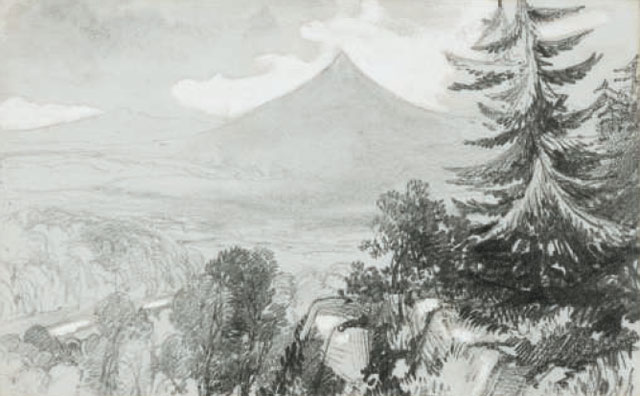 The first three of these drawings were probably taken in or near Lord Powerscourt’s deerpark. The view of Loch Tay shows the rocky scarp of Luggala on the left. The view of Bray is an important record of the appearance of the town before the arrival of the railway in 1854. Taken from outside the Market House on market day, it must date from either Saturday 22 or Tuesday 25 August, on Lear’s return journey to Dublin.