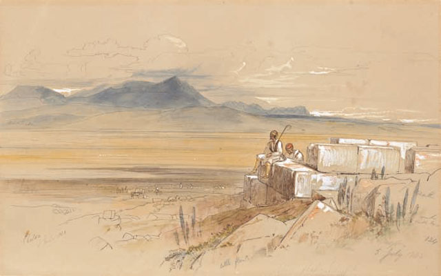 Edward Lear, Shepherd resting on ruins, Plataea, Greece.
