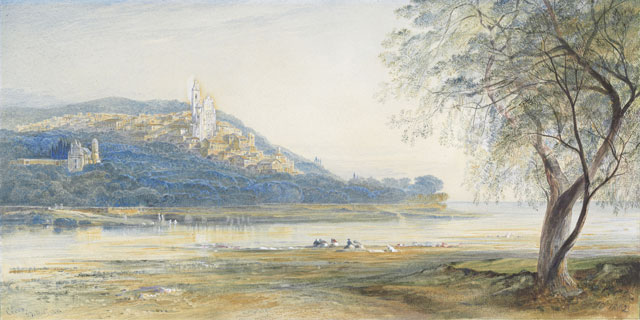 Signed with monogram and dated ‘1882’ (lower right) and inscribed and dated ‘Cérvo./ 27 Decbr. 1881′ (lower left). Pencil and watercolour heightened with bodycolour. 10 7/8 x 21 in. (27.7 x 53.4 cm.)