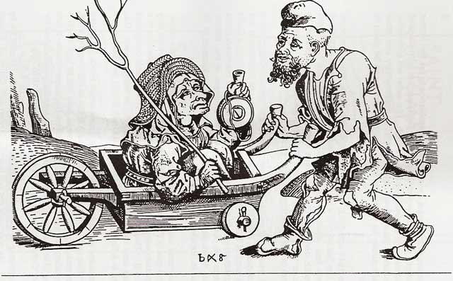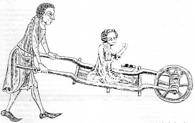 Now I think I have identified the original for all this wheelbarrow pushing: it seems that the first man who pushed, or more prabably pulled, a woman around on this vehicle was Saint Cuthman: