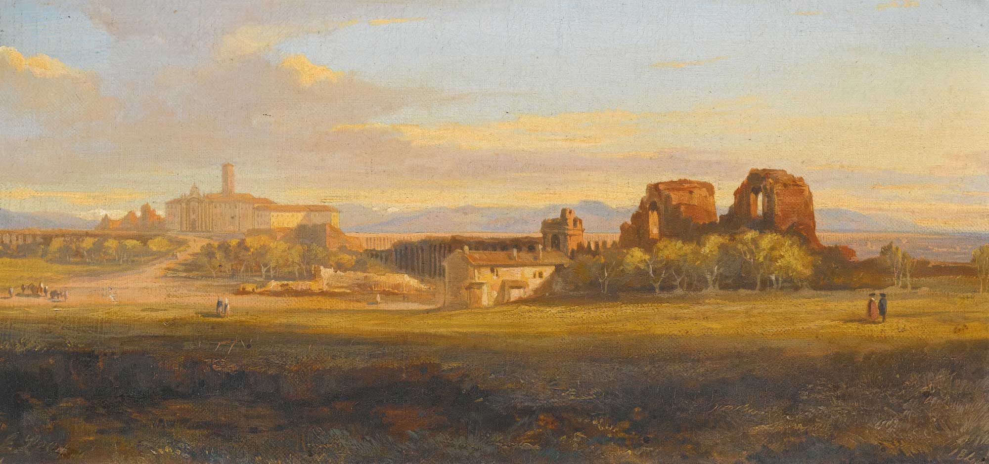 Edward Lear, A View of the Roman Campagna, a Villa and Aqueduct in the Distance.
