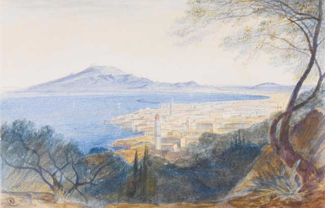 The present watercolour can be dated to this second tour, as he only started using a monogram to sign his works after 1858. He visited Zante at the end of May 1863 and spent a few days sketching there.