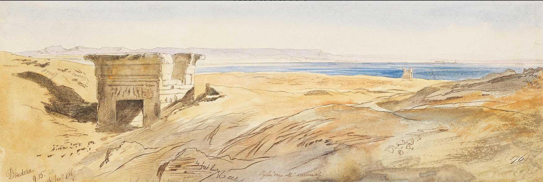 Inscribed and dated ‘Dendera/9.15./16 Jany.1867′ (lower left); numbered ‘176’ (lower right); variously annotated throughout. Pen, ink and wash. 17 x 50.5cm (6 11/16 x 19 7/8in).
