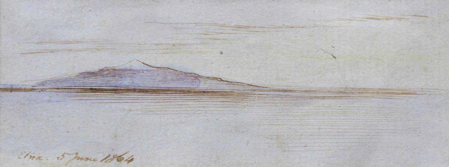 Inscribed Etna 5 June 1864, watercolour with pen and ink