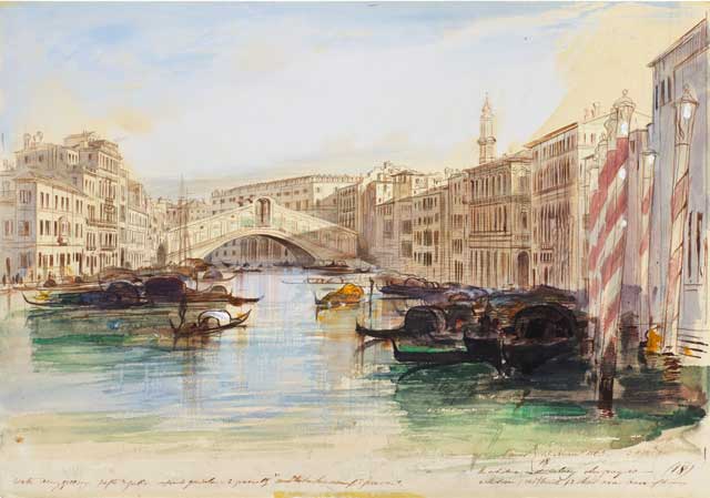 Edward Lear, The Grand Canal looking towards the Rialto Bridge, Venice.