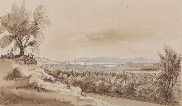 Edward Lear, Nice from the Genoa Road (1865). Yale Center for British Art.