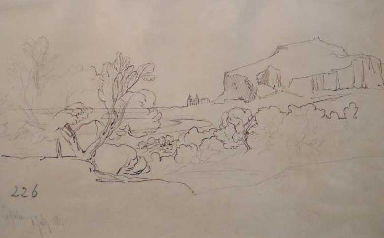 Ink and pencil on buff paper. ‘Cefalu’ inscribed and dated 8th July 1847 and numbered 226, Spink & Son Ltd label verso. 8 x 12.75in.