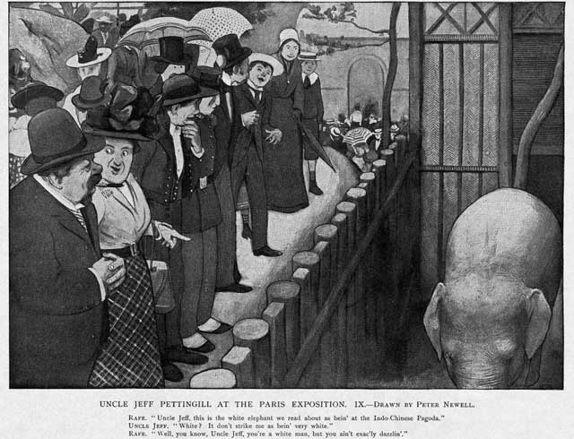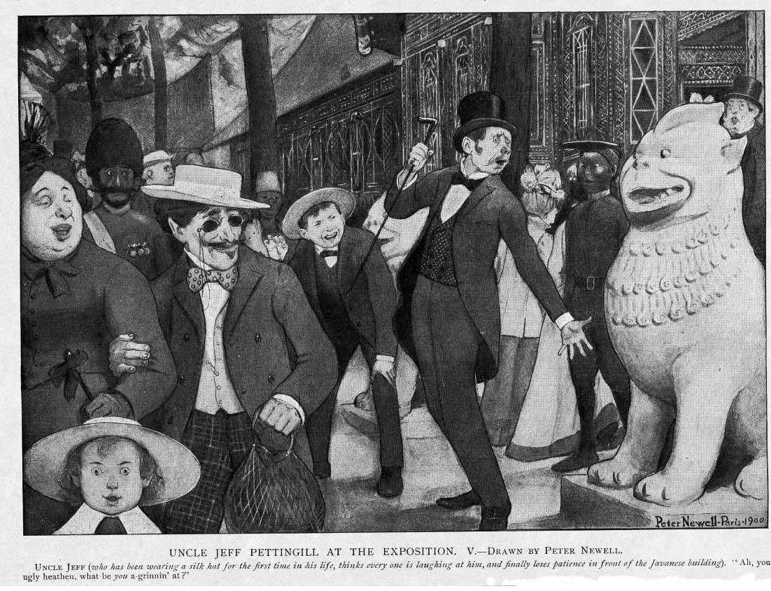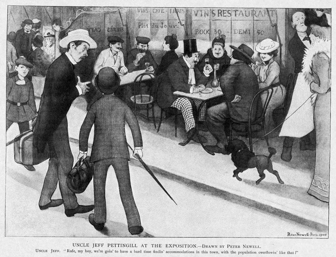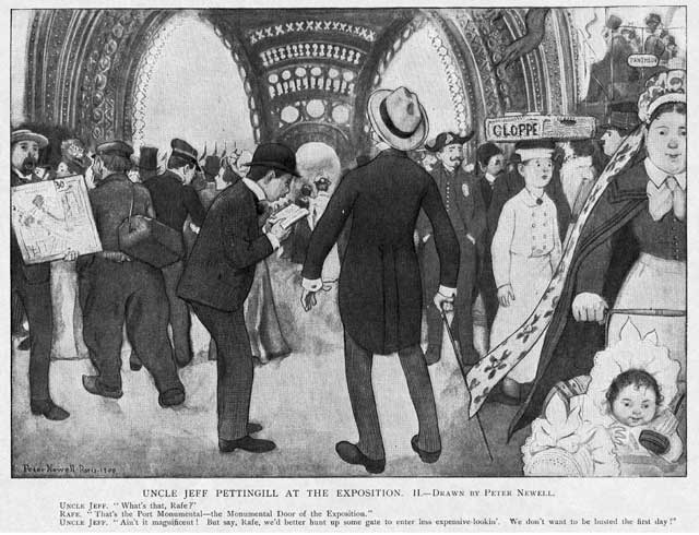 After the series devoted to the Johnson’s Family visit to the World’s Columbian Exposition of  1893 (now completed with the missing eighth number), Peter Newell was sent to the Exposition Universelle Internationale in Paris in 1900 and produced another picture story, whose protagonist was “Uncle Jeff Pettingill.”