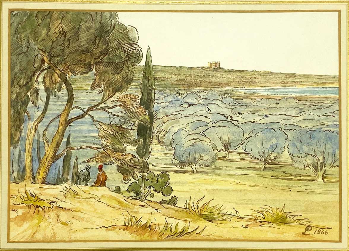 1866. Watercolor and ink on paper. 7.5 by 10.75.