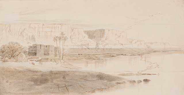 Edward Lear, The Nile at Kasr-Es-Saad, Egypt.