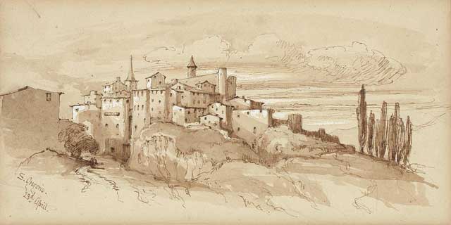 Edward Lear, Tivoli and San Gregorio, a pair, the first inscribed ‘Tivoli’ (lower left); the other inscribed and dated ‘S.Grigorio [sic]/23rd April’ (lower left).