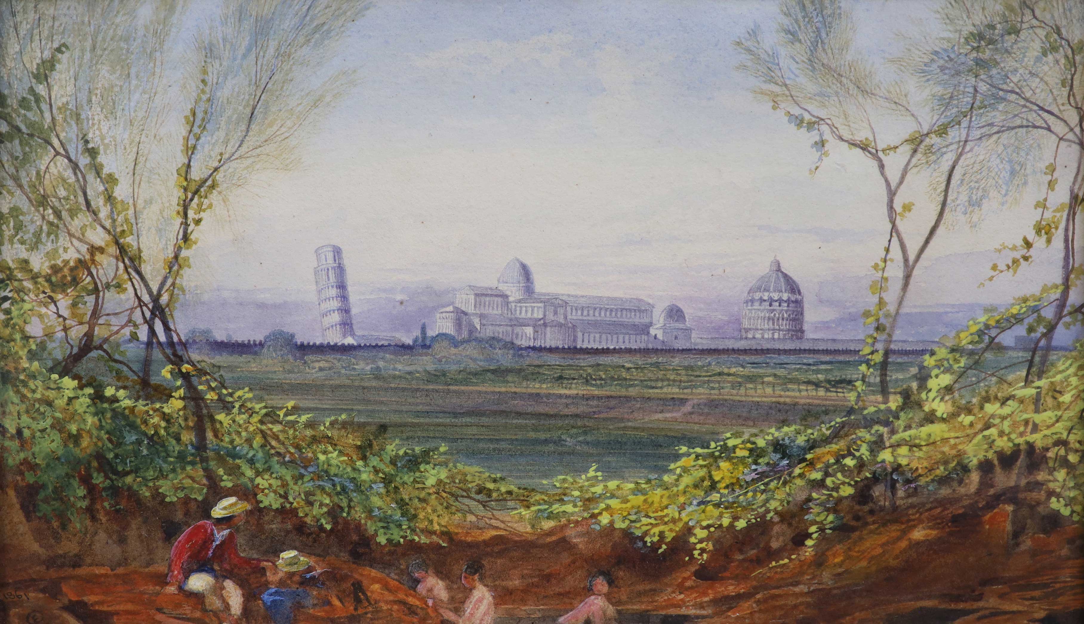 Edward Lear, Young boys bathing, Pisa in the distance.