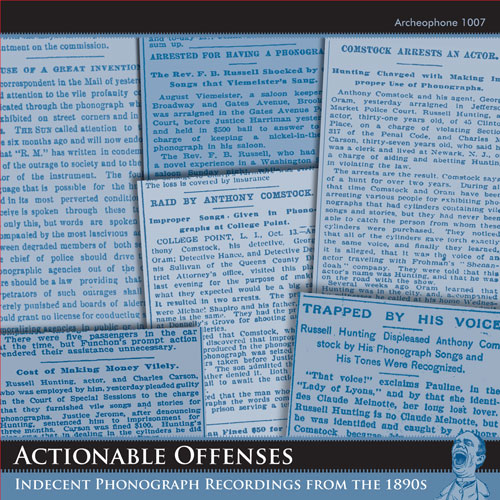 Although he didn’t mention them in The Phonoscope, Hunting also put out a series of indecent recordings for saloons and amusement arcades on Coney Island and was briefly imprisoned for violating obscenity laws. He wasn’t alone either, and lots of cylinder nasties appeared in the 1890s, until legislation caught up and outlawed them. While most of these lewd recordings were destroyed, you can listen to examples that survived in the 2007 compilation Actionable Offenses: Indecent Phonograph Recordings from the 1890s. I’ve listened to them, so you don’t have to – it’s mainly profanity-laden skits and limericks.