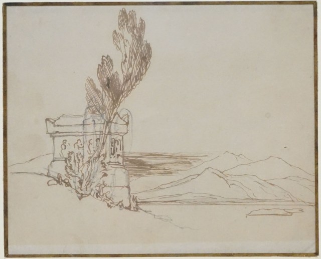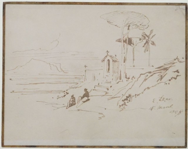 Pen and ink, signed lower right ‘ E Leer’ and further inscribed ’15 March 1838′, 9 x 12cm and another, landscape, pencil, pen and ink, unsigned, 9.5 x 12cm.