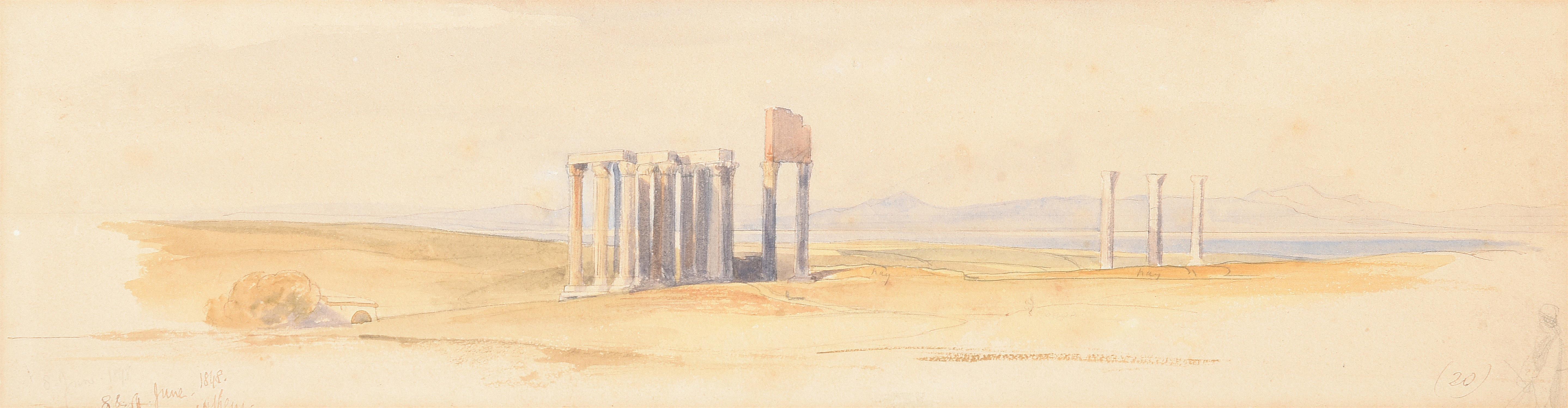 Pencil and watercolour. Inscribed and dated ‘8th of June 1848 Athens’ (lower left) and numbered ‘(20)’ (lower right). 9.5 x 34cm (3½ x 13¼ in.)