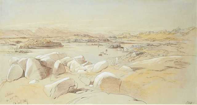 Edward Lear, View of the Nile at Es Shelaal, Egypt.