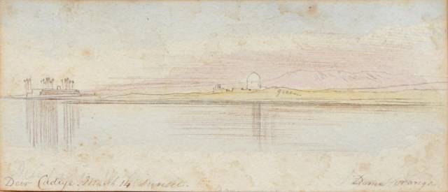 Edward Lear, Deir Kadige on the River Nile, Egypt.