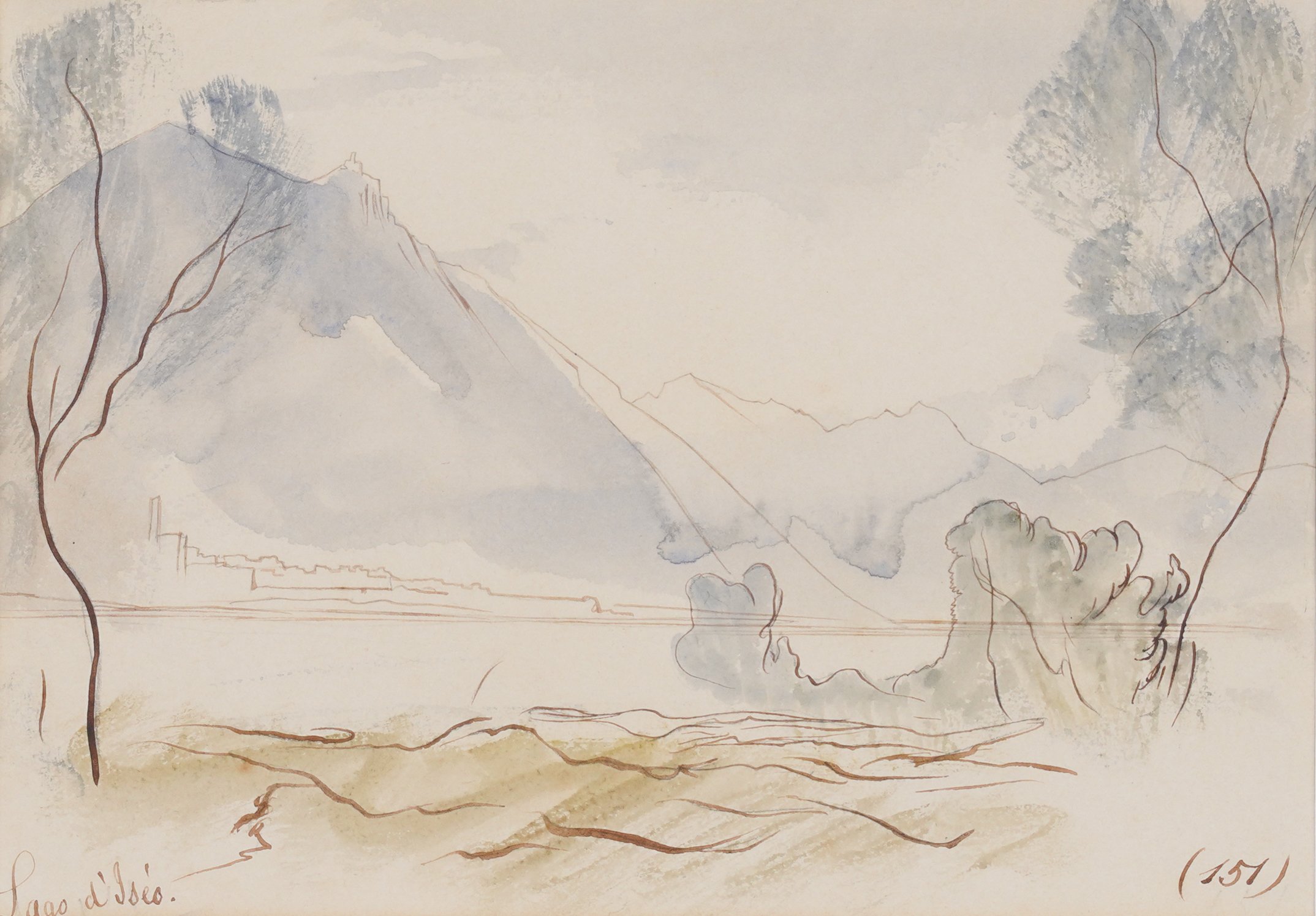 Titled (lower left) and numbered ‘151’ (lower right). Brown ink and watercolour. 15 x 21.5cm.