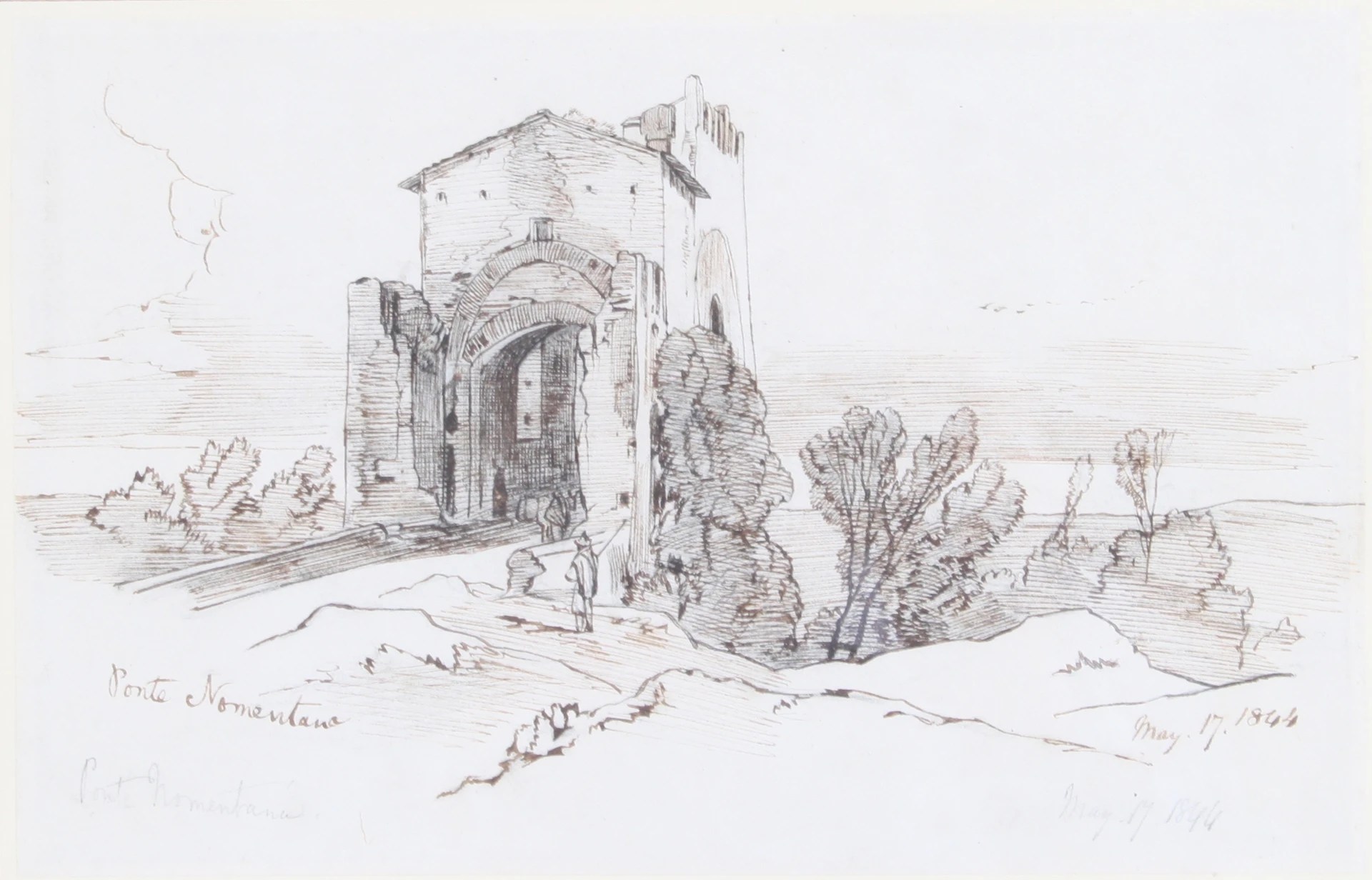Edward Lear, Ponte Nomentano near Rome, May 17th 1844.