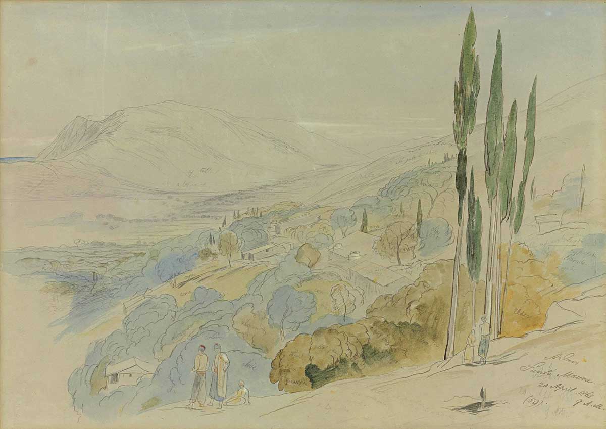 In 1844-45, Edward Lear was evidently planning to illustrate the seventh book of Virgil’s Aeneid, and had asked Ricci, a Virgil expert, to help him select places worth drawing and to provide letters of introduction. Lear never realized the illustrations and probably abandoned the plan in the early stages owing to an eye infection, as he explains in the letter: