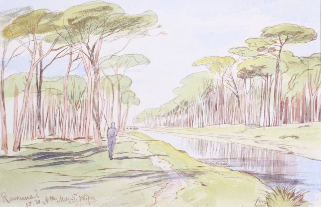 Inscribed and dated 9 April 1867 [actually 1863, 2 P.M.], pen and sepia ink with colour washes and white, 35 x 52cm.