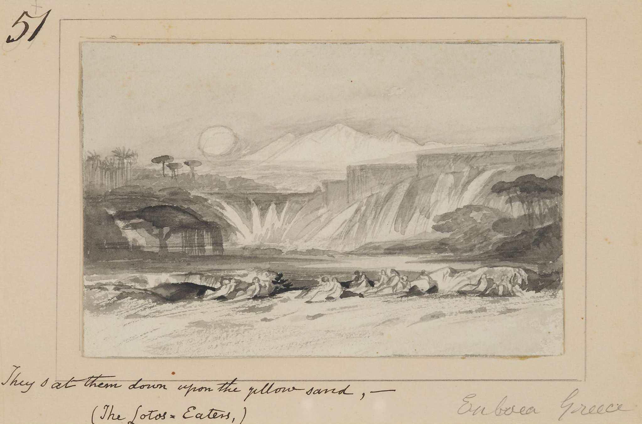 Edward Lear, Lotus Eaters, Euboea, Greece. “They sat them down upon the yellow sand.”